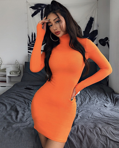 Euramerican Single-breasted Design Black Polyester Knee Length Dress