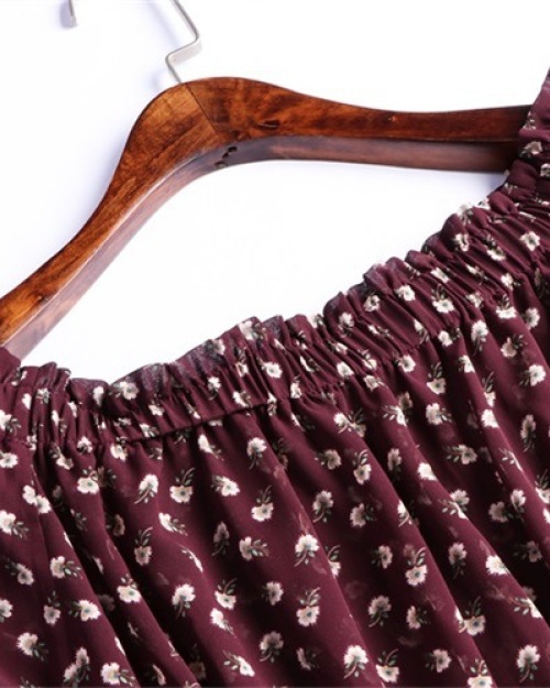 Leisure Round Neck Pocket Design Red Polyester Floor Length Dress