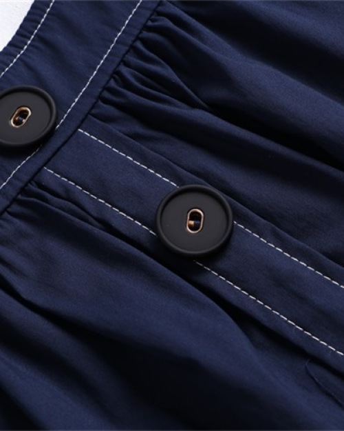 Euramerican High Waist Button Decorative Black Polyester Pants