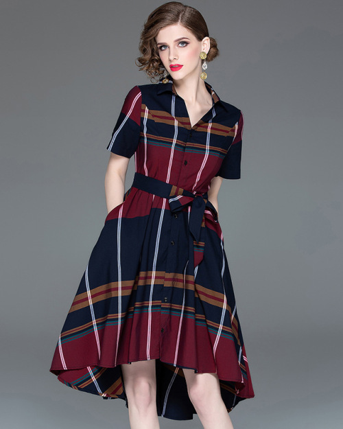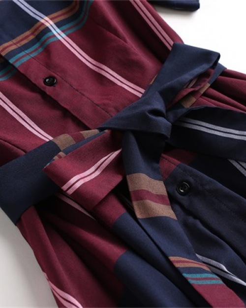 Stylish Turndown Collar Long Sleeves Patchwork Purple Polyester Two-piece Skirt Set