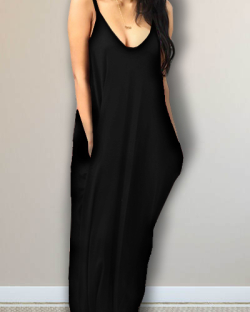 Alluring V Neck Spaghetti Strap Sleeveless Asymmetrical Black Cotton Blend Ankle Length Dress
