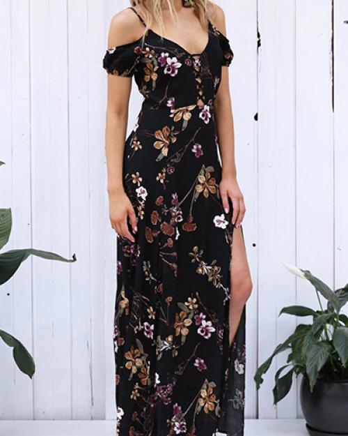 Blending Bohemian V Neck Spaghetti Strap Short Sleeve Ankle Length Dresses