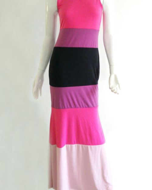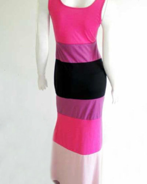 Bohemian O Neck Tank Sleeveless Patchwork Striped Polyester Sheath Ankle Length Dress