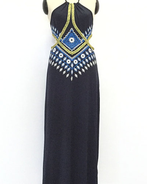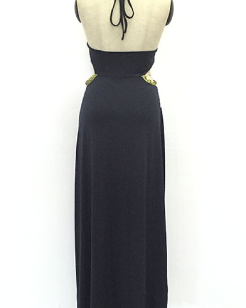 Bohemian Off The Shoulder Sleeveless Printed Hollow-out Qmilch Ankle Length Dress