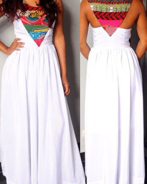 Bohemian Round Neck Sleeveless Printed Qmilch Ankle Length Dress