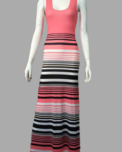 Bohemian U Neck Tank Sleeveless Back Cut-out Patchwork Striped Cotton Blend Sheath Ankle Length Dress