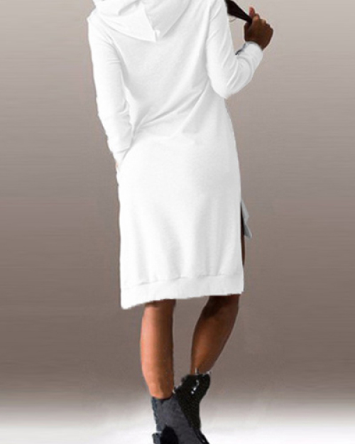 Casual Long Sleeves Patchwork Asymmetrical White Cotton Hooded Mini Dress