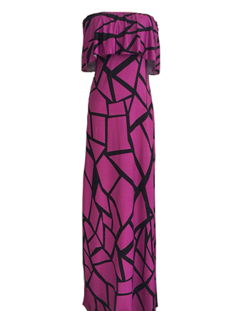 Charming Bateau Neck Short Sleeves Falbala Design Purple Milk Fiber Sheath Ankle Length Dress