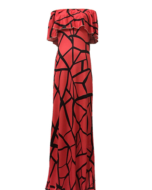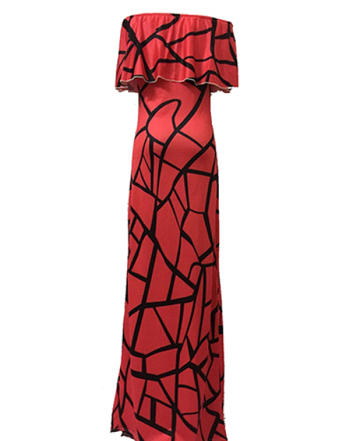 Charming Bateau Neck Short Sleeves Falbala Design Red Milk Fiber Sheath Ankle Length Dress