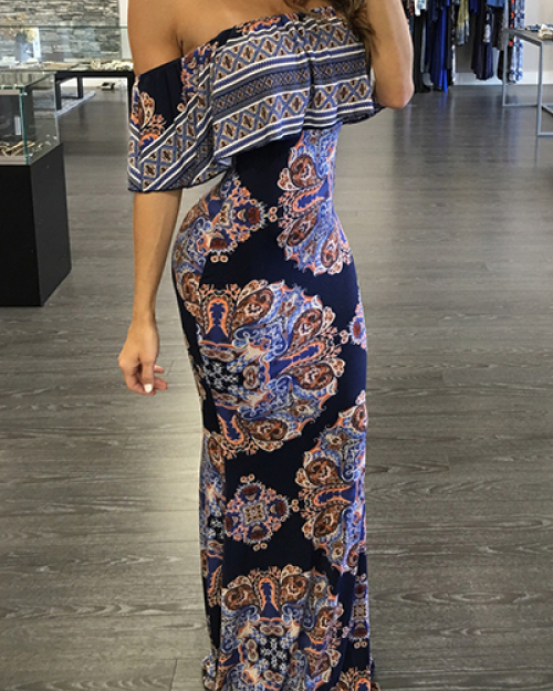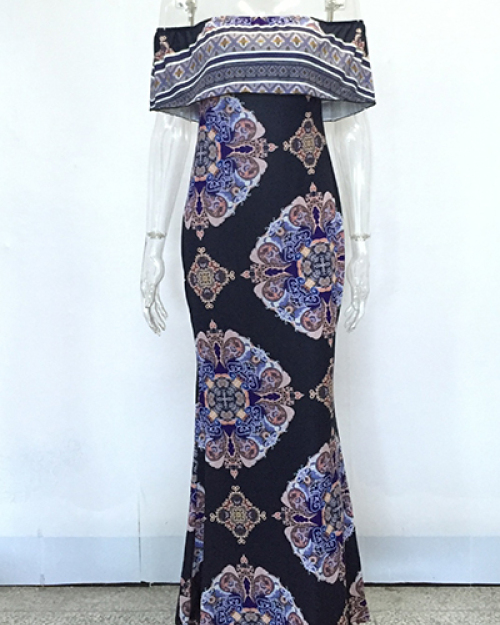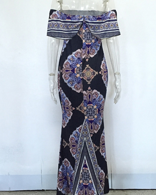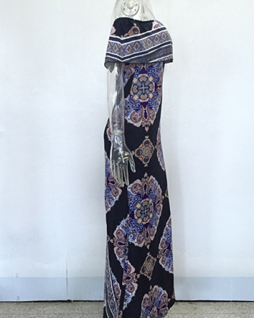 Charming Bateau Neck Strapless Short Sleeves Printed Qmilch Sheath Ankle Length Dress