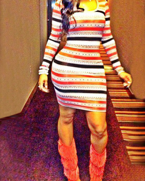 Cheap Sexy O Neck Long Sleeves Striped Patchwork Polyester Sheath Mini Dress
