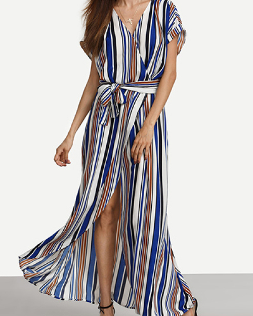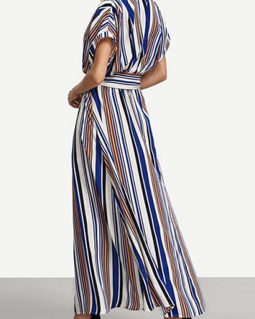 Chiffon Casual V Neck Short Sleeve Ankle Length Dresses