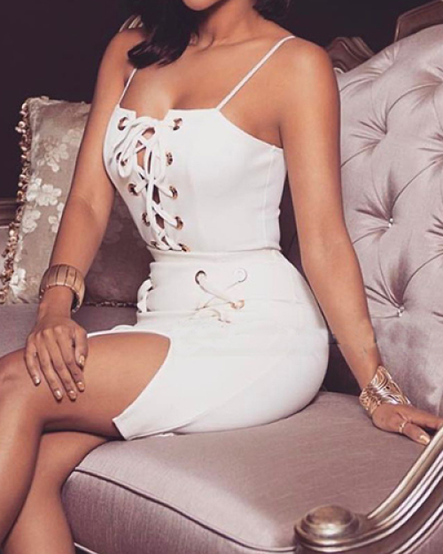 Cotton Blend Sexy Square Sleeveless Sheath Knee Length Dresses