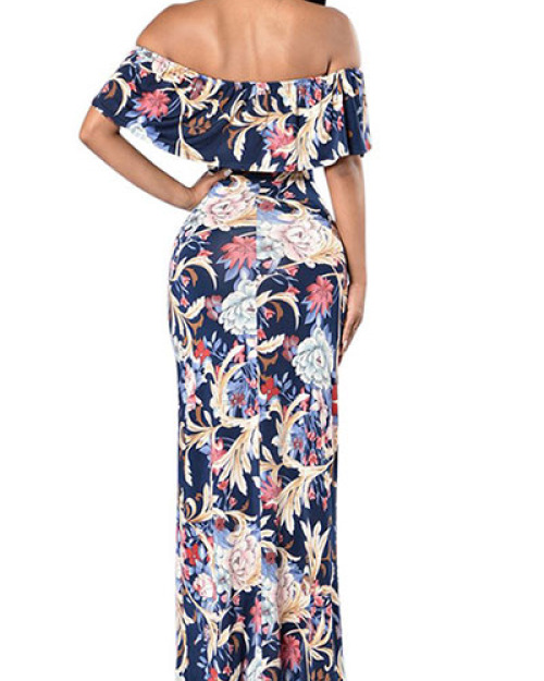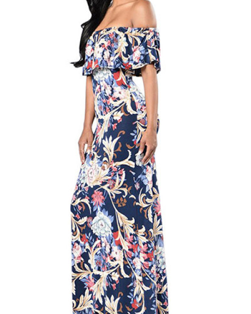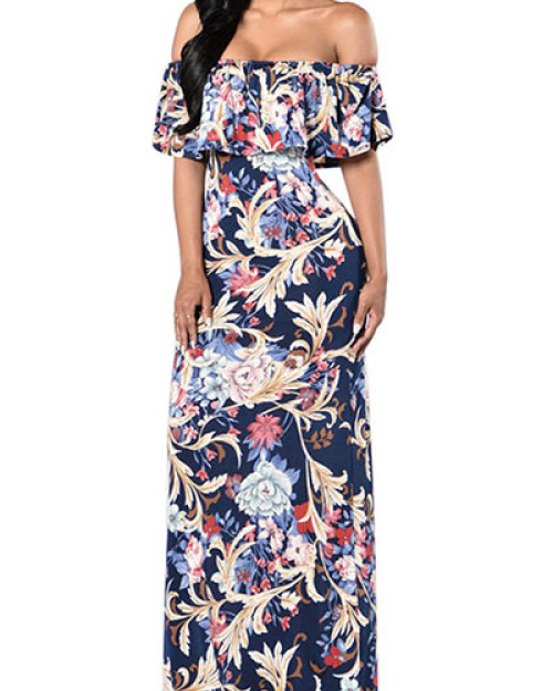 Cotton Fashion Bateau Neck Short Sleeve Ankle Length Dresses