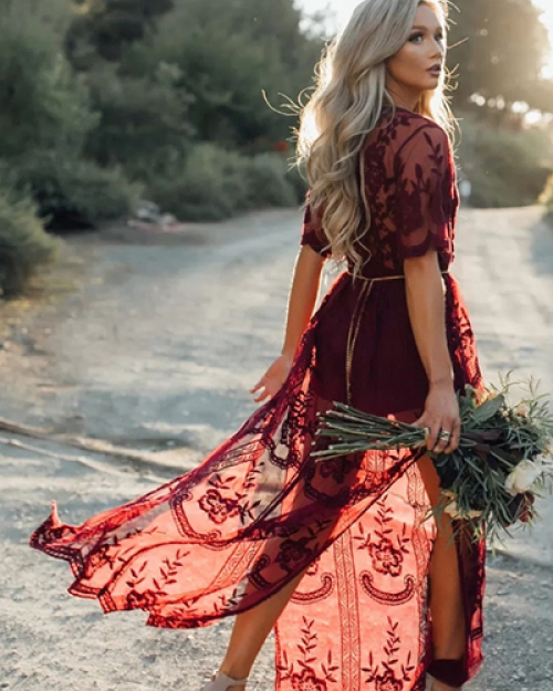 Cotton Vintage V Neck Short Sleeve Sheath Ankle Length Dresses
