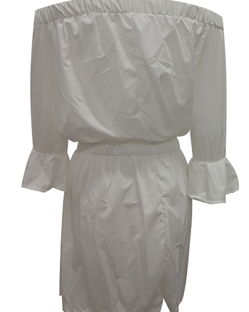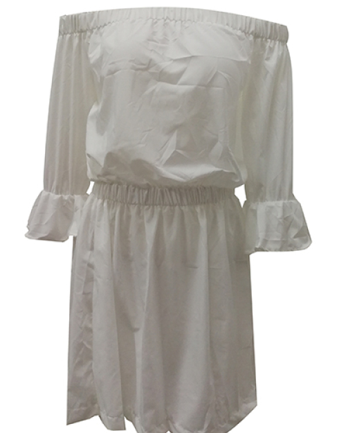 Euramerican Dew Shoulder Half Sleeves White Cotton Blend Mini Dress