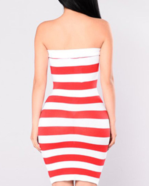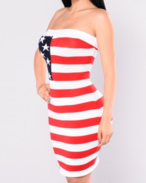 Euramerican Dew Shoulder Printed Pink Milk Fiber Sheath Knee Length Dress (Independence Day)