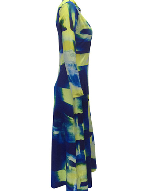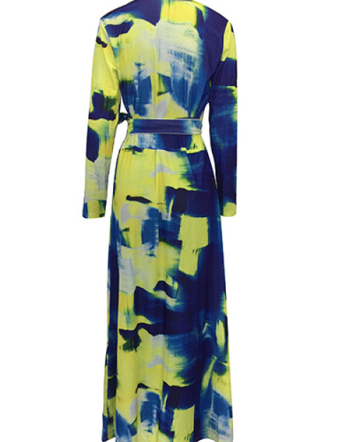 Euramerican V Neck Long Sleeves Graffiti Printing Healthy Fabric Floor length Dress