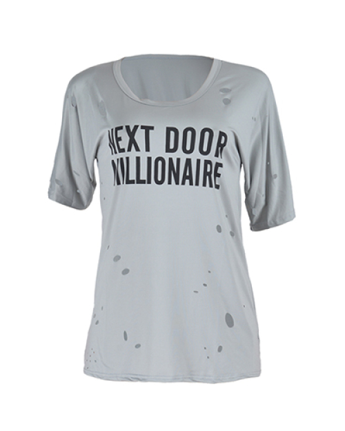 Euramerican V Neck Short Sleeves Broken Holes Grey Qmilch Mini Dress
