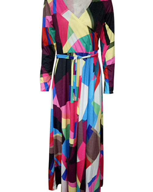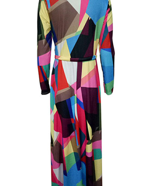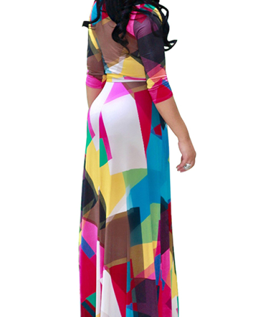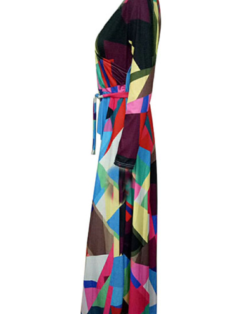 Euramerican V Neck Three Quarter Sleeves Digital Printing Healthy Fabric Floor Length Dress