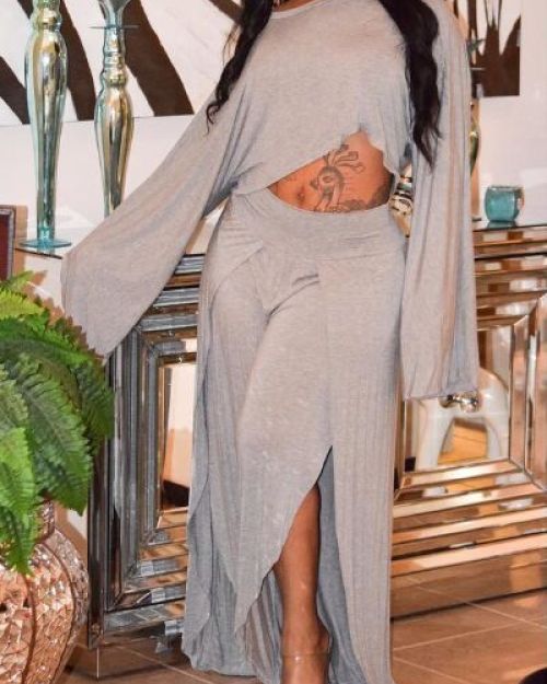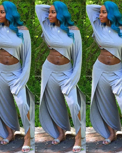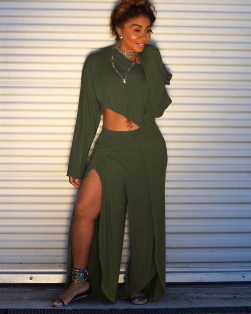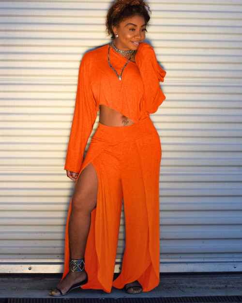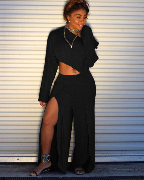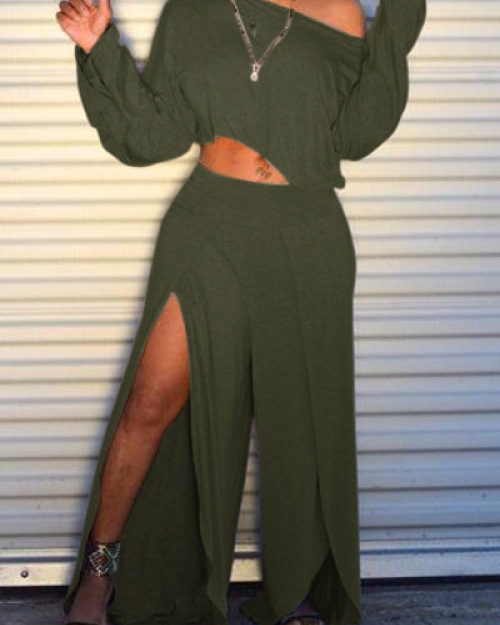 European and American fashion women's sexy one-shoulder long-sleeved solid color casual split pants suit nightclub #94961