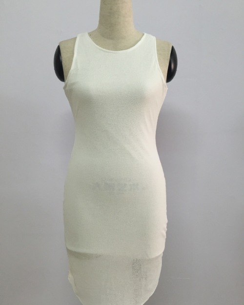 Fashion O Neck Tank Sleeveless White Blending Sheath Knee Length Dress