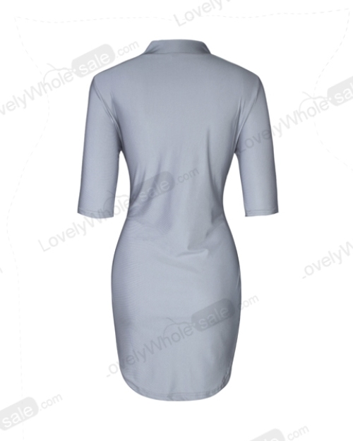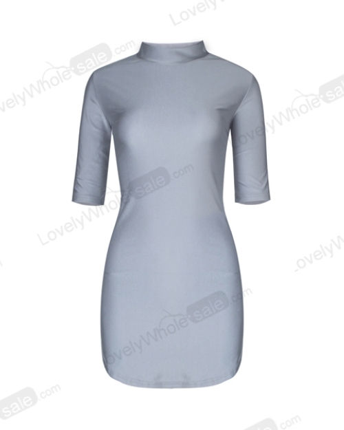 Fashion Turtleneck Short Sleeves Asymmetrical Grey Spandex Sheath Mini Dress