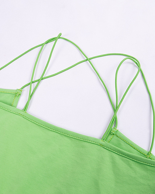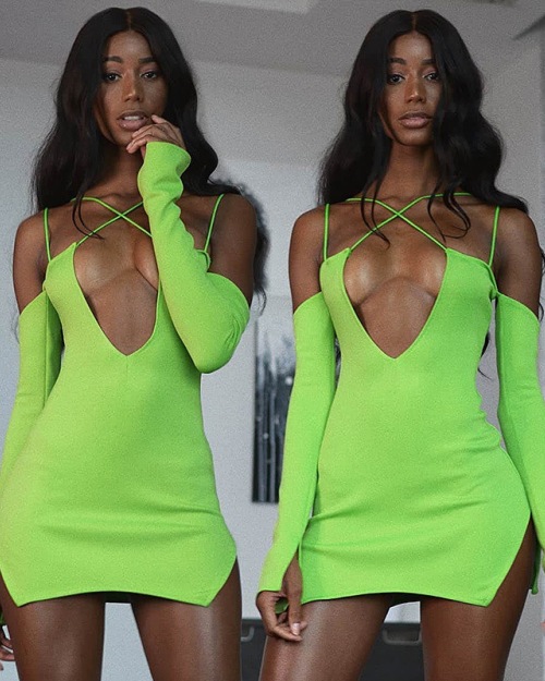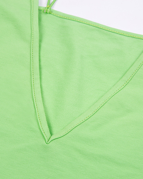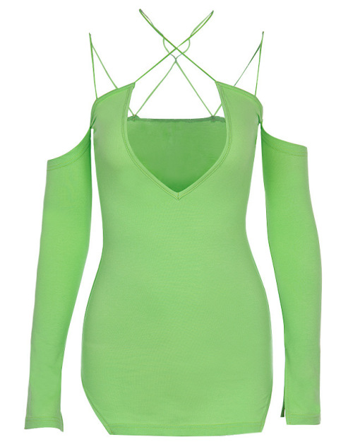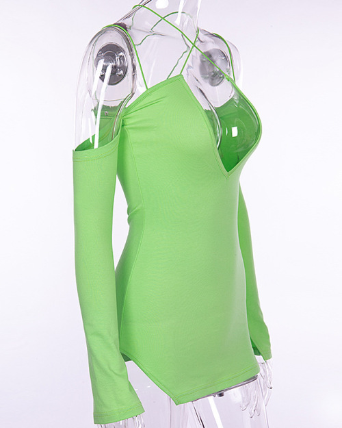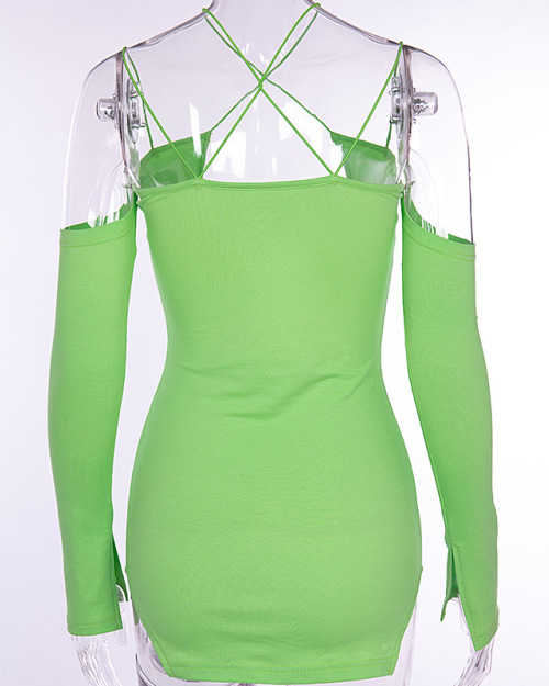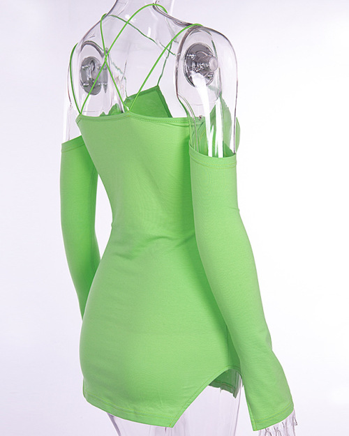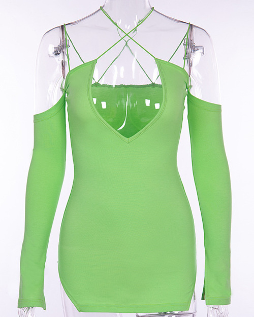 Fluorescent green sexy halter dress cross-border women's long sleeve nightclub V halter slit miniskirt #95104