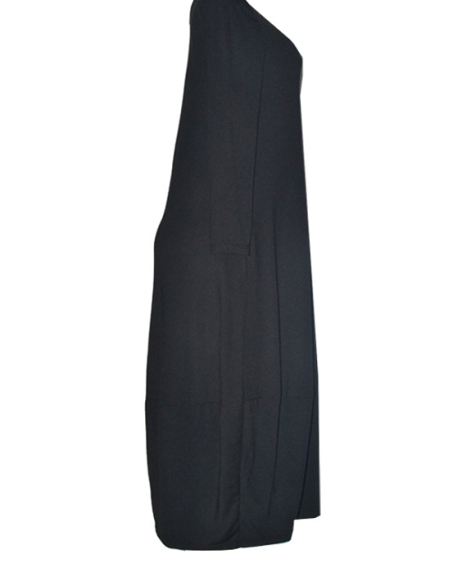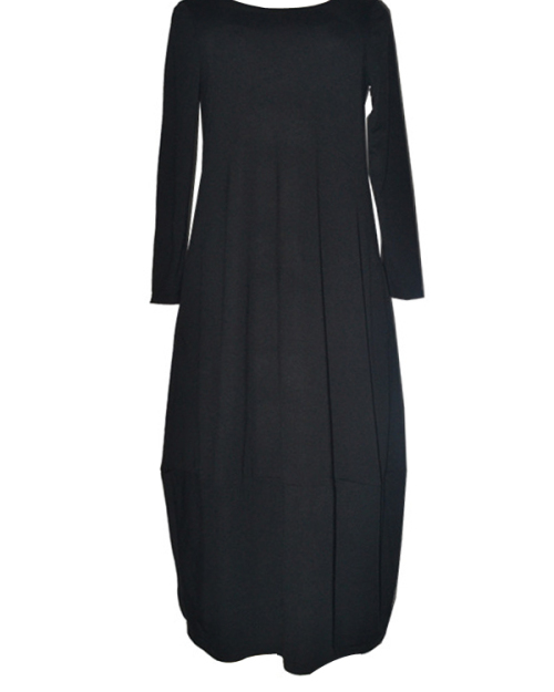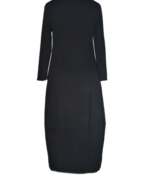 Leisure Round Neck Black Polyester Mid Calf Dress