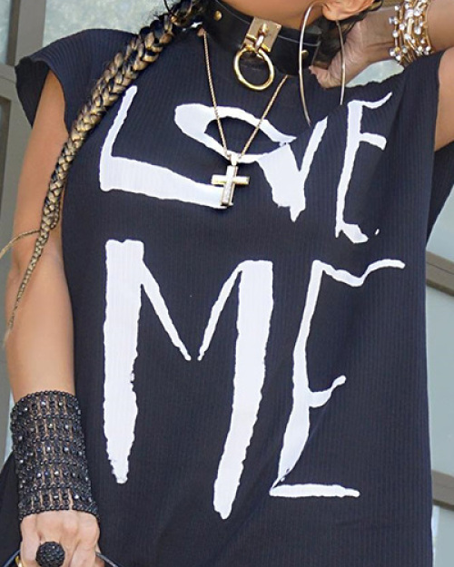 Leisure Round Neck Printed Black Cotton Mini Dress