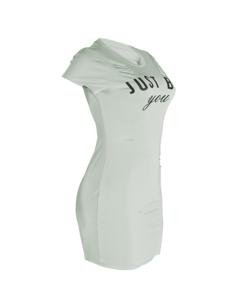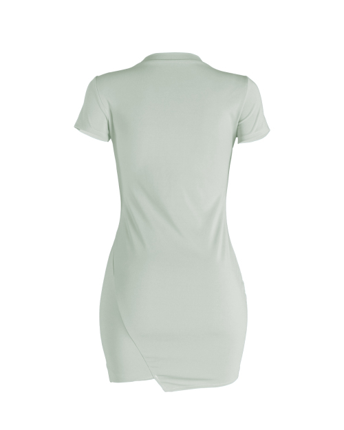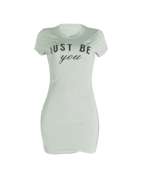 Leisure Round Neck Short Sleeves Broken Holes Light Green Polyester Mini Dress