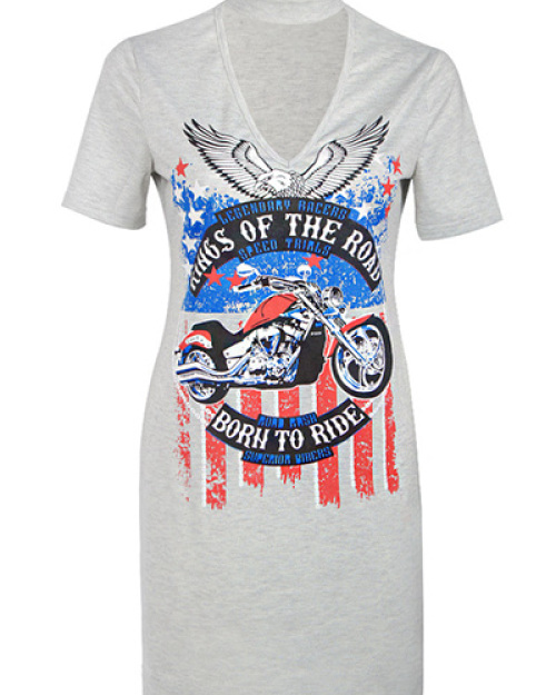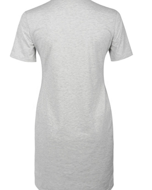 Leisure Round Neck Short Sleeves Printed Gray Cotton Blend Mini Dress