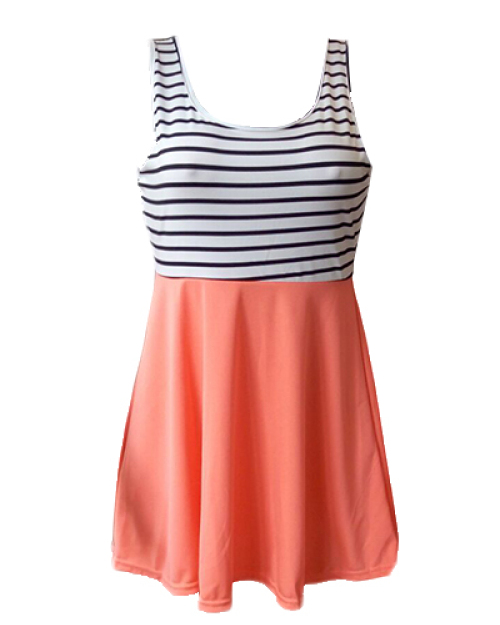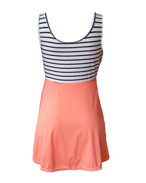 Leisure U-shaped Neck Tank Sleeveless Striped Patchwork Milk Fiber Mini Dress