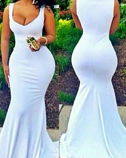Milk Fiber Blend Fashion U Neck Sleeveless Mermaid Floor length Dresses