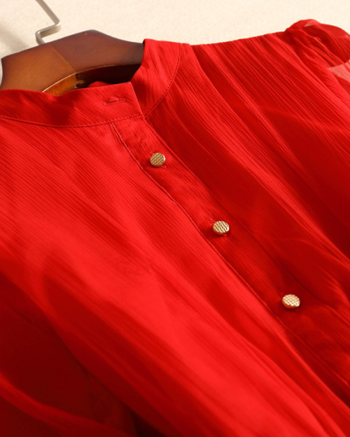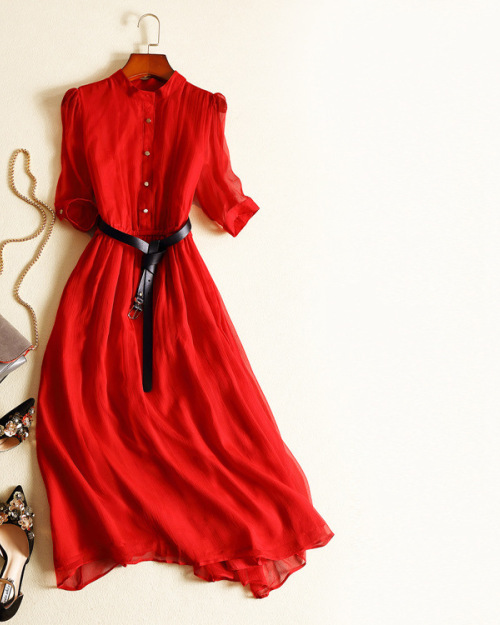 New boutique women's silk delivery belt circular collar mid-sleeve mulberry silk dress spring skirt #95042