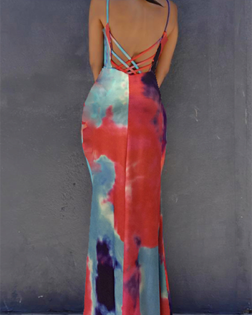 Polyester Sexy V Neck Sleeveless Ankle Length Dresses