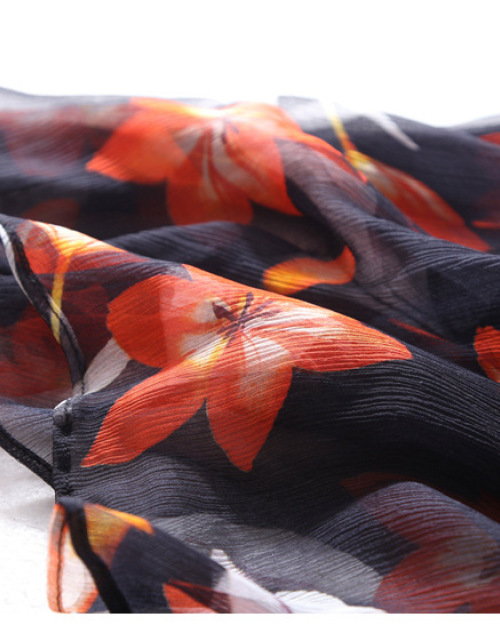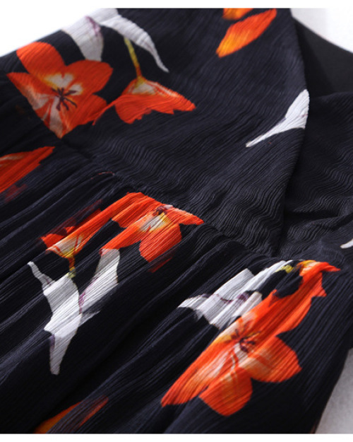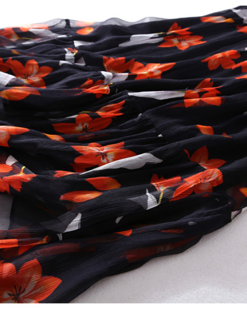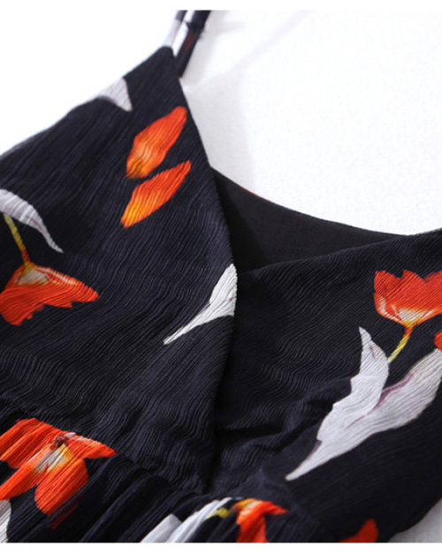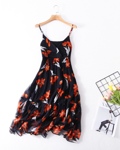 Printed silk halter dress summer high - end women's temperament silk silk train train full head MIDI skirt #95063