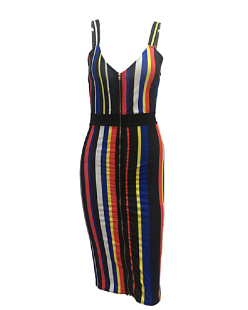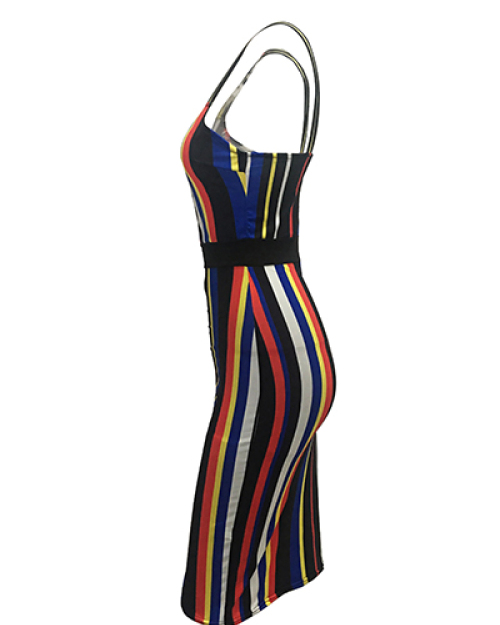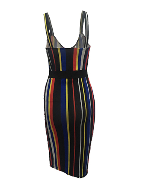 Qmilch Sexy V Neck Sleeveless Sheath Mid Calf Dresses