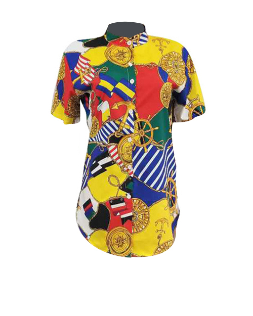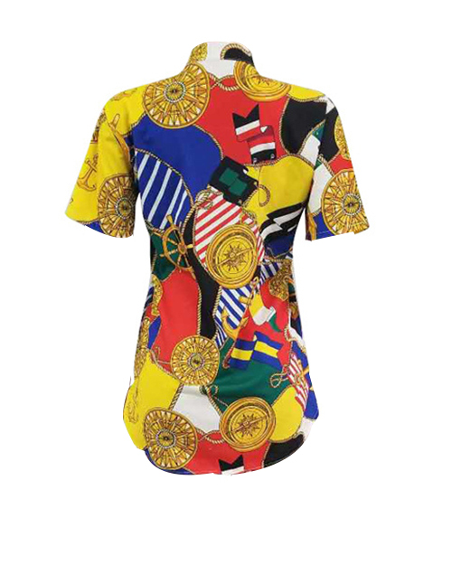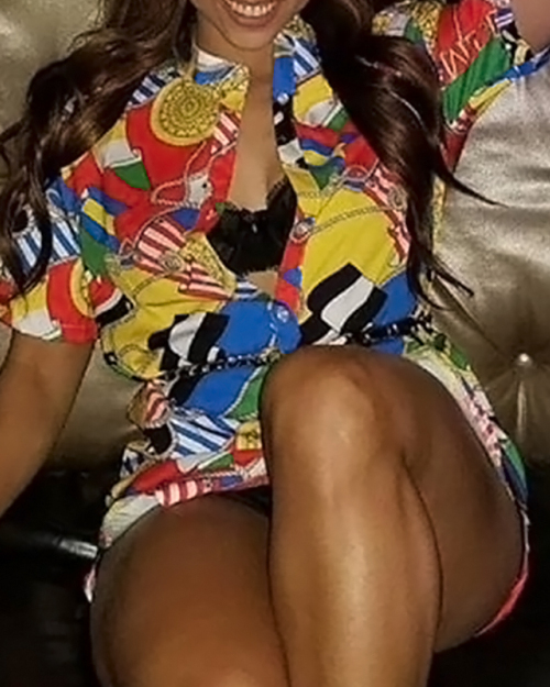 Retro Turndown Collar Non Positioning Printed Polyester Mini Shirt Dress(Without Belt)