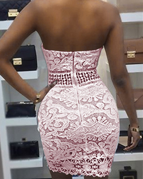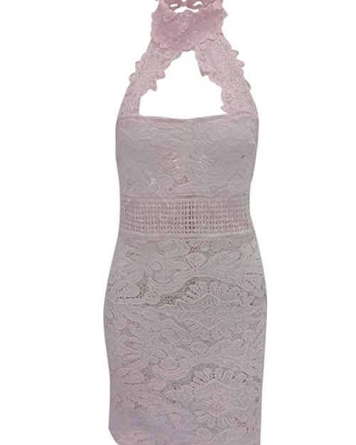 Sexy Backless Pink Lace Sheath Mini Dress(Without Lining)