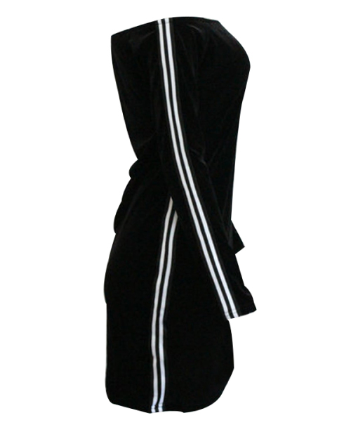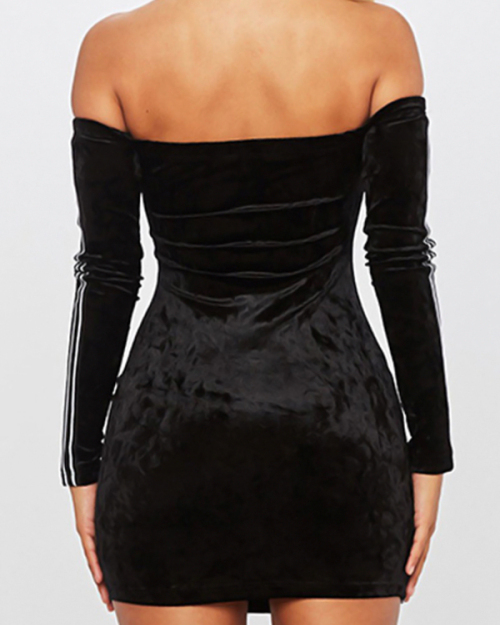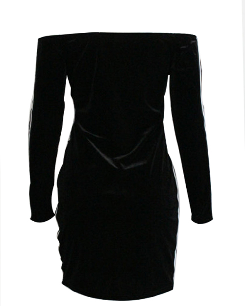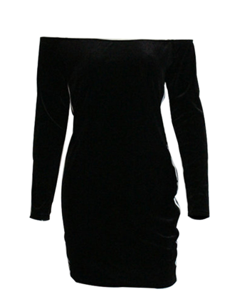 Sexy Bateau Neck Ribbon Splicing Black Velvet Mini Dress(Without Necklace)