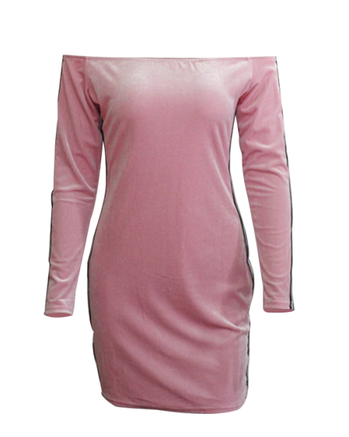 Sexy Bateau Neck Ribbon Splicing Pink Velvet Mini Dress