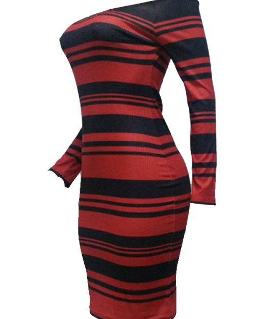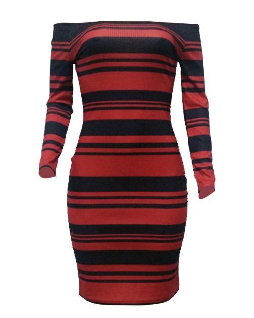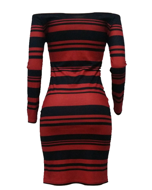 Sexy Bateau Neck Striped Patchwork Polyester Knee Length Dress