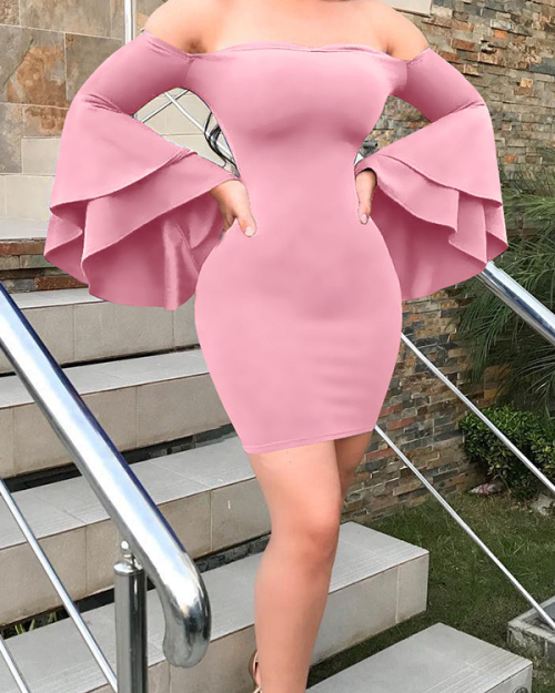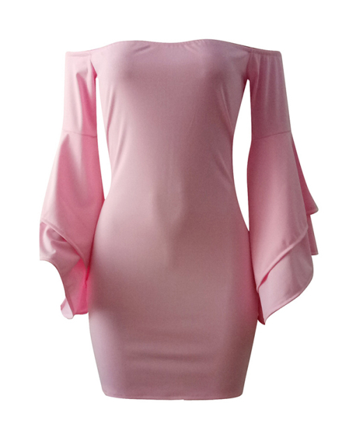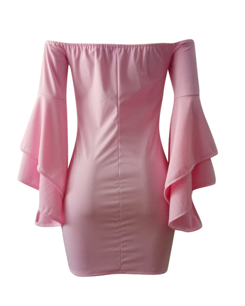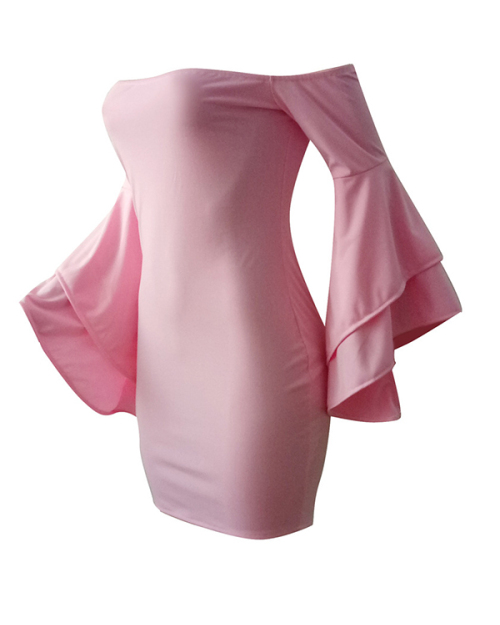 Sexy Bateau Neck Trumpet Sleeves Pink Polyester Mini Dress