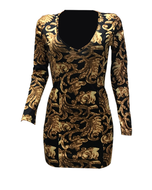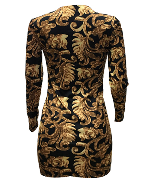 Sexy Deep V Neck Long Sleeves Printed Healthy Fabric Sheath Mini Dress