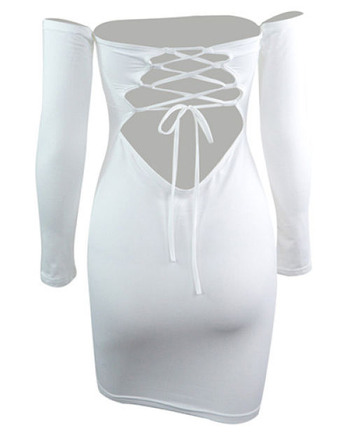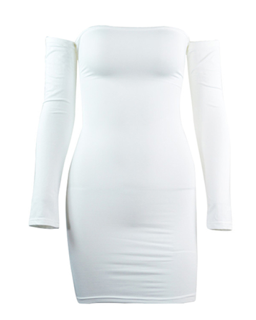 Sexy Dew Shoulder Long Sleeves Hollow-out White Blending Sheath Mini Dress