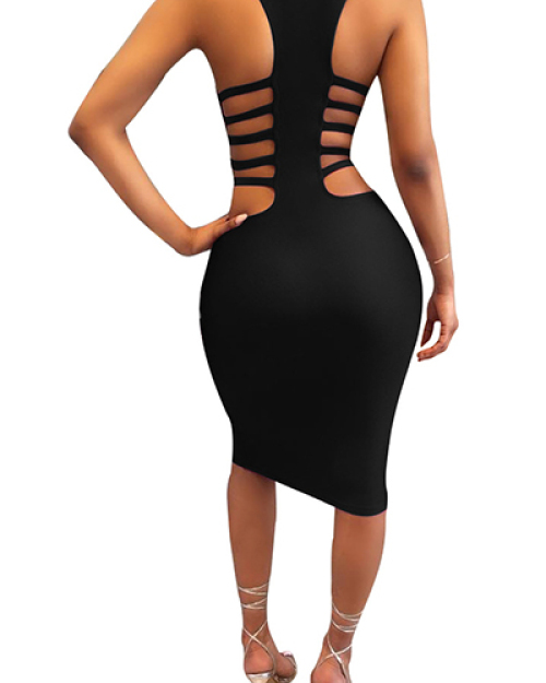 Sexy Hollow-out Black Blending Sheath Knee Length Dress