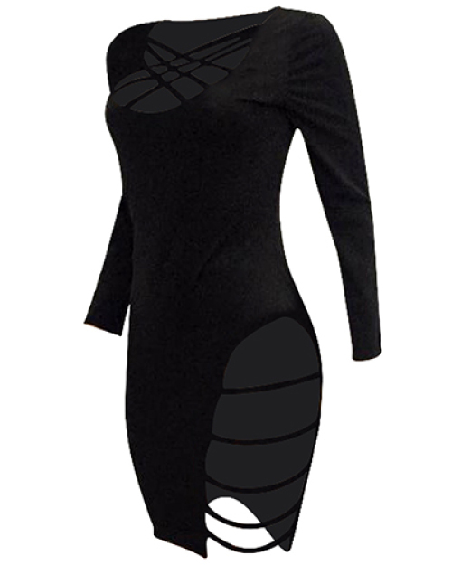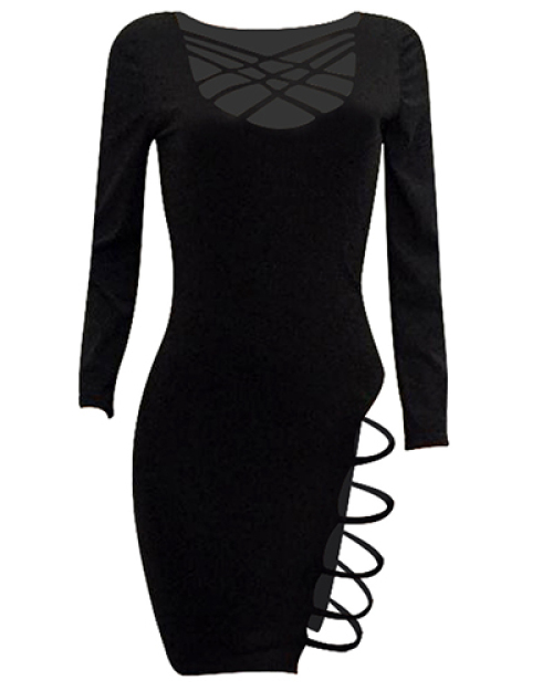 Sexy Long Sleeves Hollow-out Black Twilled Satin Sheath Knee Length Dress