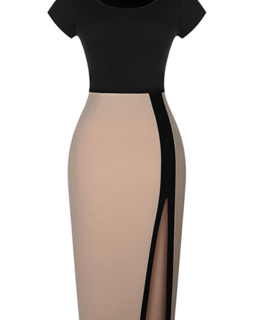 Sexy O Neck Short Sleeve Sheath Mid Calf Polyester Dress