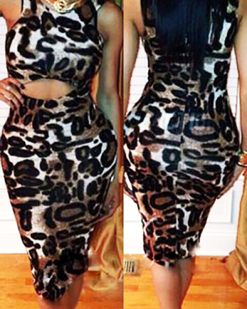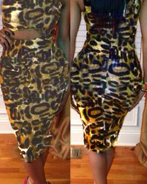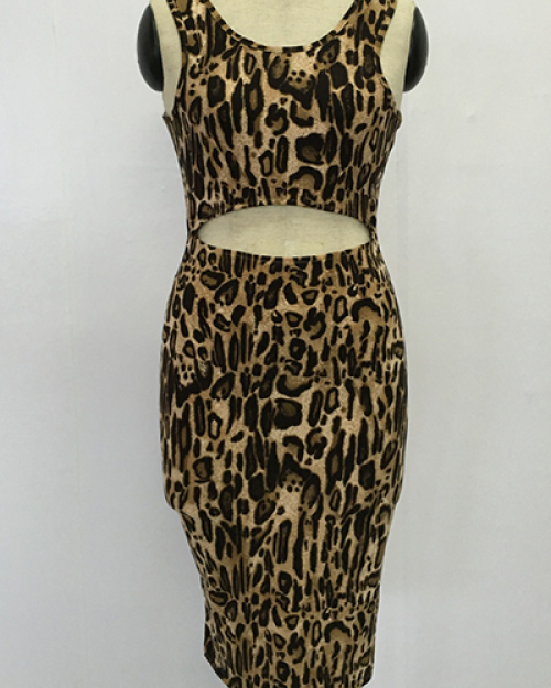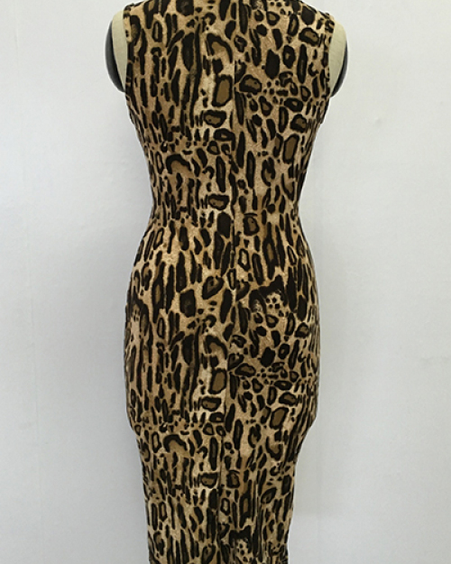 Sexy O Neck Tank Sleeveless Leopard Printed Polyester Sheath Knee Length Dress